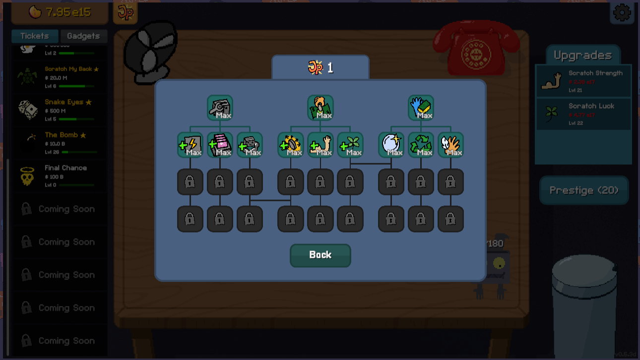 WELP. After my first scratch I bought a gadget for $2 and now I'm softlocked. I have $0 and so I can't buy the next thing to scratch. Reset Progress doesn't seem to do anything :|